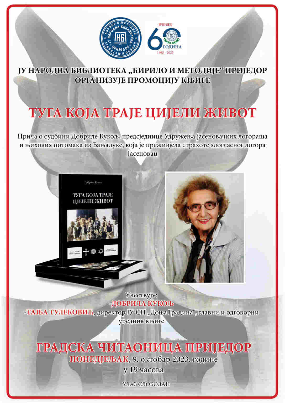 ЈУ Народна библиотека ,,Ћирило и Методије“ Приједор организује промоцију књиге ,,Туга која траје цијели живот“ аутора Добриле Кукољ, издавача ЈУ Спомен-подручја Доња […]