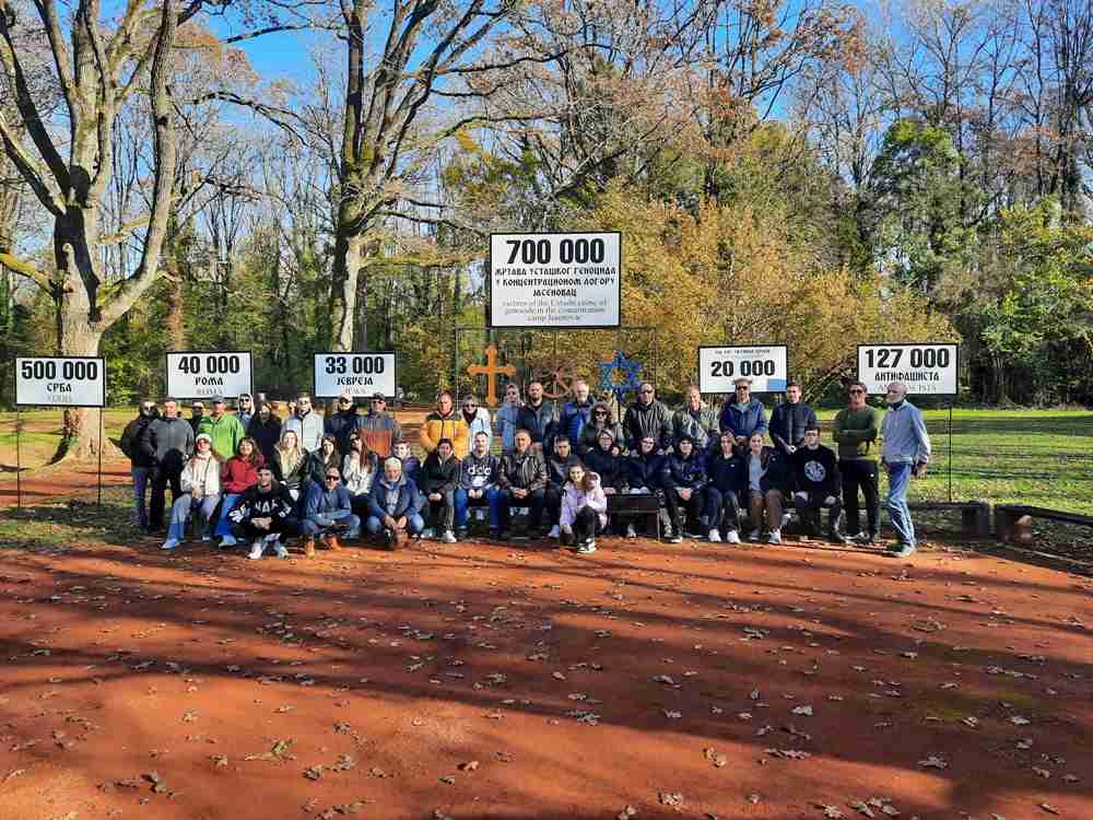 Посјета чланова грчке филхармоније са Крфа „Љападес“ ЈУ Спомен-подручју Доња Градина. Историјски час им је одржао виши кустос Мирко Димић.