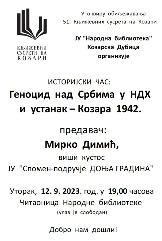 Поводом обиљежавања 51. Књижевних сусрета на Козари, ЈУ „Народна библиотека“ Козарска Дубица организује историјски час на тему Геноцид над Србима у НДХ […]