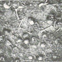 Bleeding was found in the brain and the cerebral ventricles, and traces of very heavy bleeding were found between the bones of the right arch of the skull and brain. This bleeding was caused by a compression of the brain, which, in fact constituted the immediate cause of death. The person to whom the skull belonged suffered injury from a blow with a dull, hard object to the crown part of the occipital bone. According to the amount of bleeding between the bones of the right side of the skull and the brain, it can be determined with certainty that the person lived after the injury for some time, at least 2-5 hours. In this case it was a young woman.
