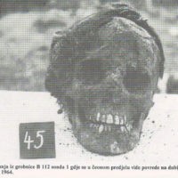 In the period from 1963 to 1965, multidisciplinary excavations were organized in Donja Gradina. Some grave pits were visible: darker areas of grass above the remains of the victims. But many of the graves could not be seen because the residents of the village of Donja Gradina were allowed to cultivate the land for agricultural purposes. Because of the inability to identify the upper surface of the grave pits by ordinary observation of cultivated land, the ground was bored with a “Dutch drill.” This drilling was done by Alojz Šercelj. He found undiscovered burial pits and identified directions and lengths of all the discovered graves. Geodesists from Bosanska Dubica in 1964 drew the outline of each grave on the ground surface of Donja Gradina.