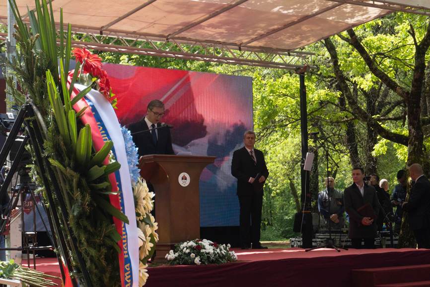 Вијенце на гробном пољу Тополе положили су предсједник Републике Српске Жељка Цвијановић, предсједник Народне скупштине Недељко Чубриловић, премијер Српске Радован Вишковић, српски члан и предсједавајући Предсједништва БиХ Милорад Додик, предсједавајући Савјета министара Зоран Тегелтија и предсједник Србије Александар Вучић.